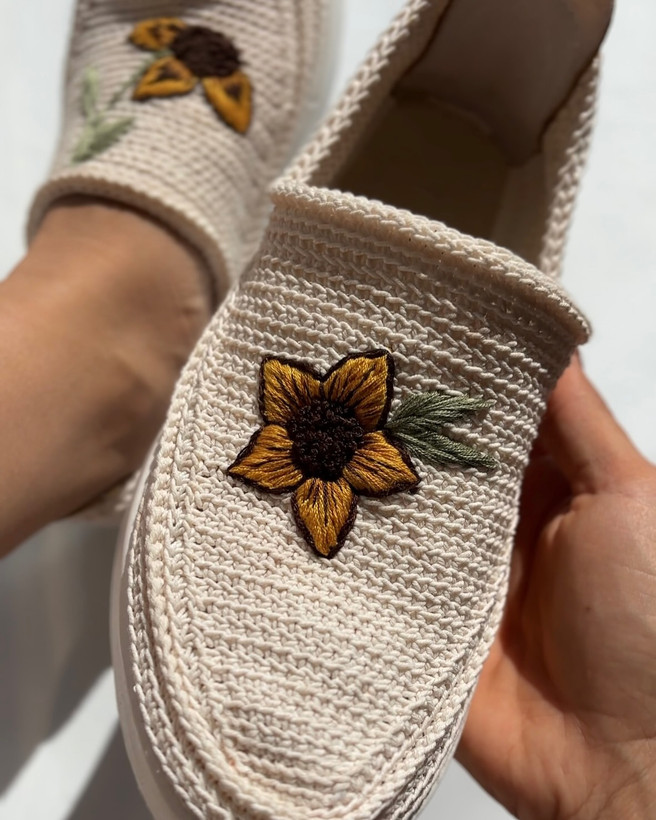 هِلورا؛ گیوهی دستدوز با گلدوزی آفتابگردون سبک، راحت، خاص… مخصوص دلای آفتابدوست! طرح کفشت رو خودت انتخاب کن تو هم عاشق آفتابگردونی؟ تو کامنتها برام بنویس طرح اختتصاصی سارگُل برای سفا رش دایر کت بده یا از لیـک بیو کن. @sargol.artist